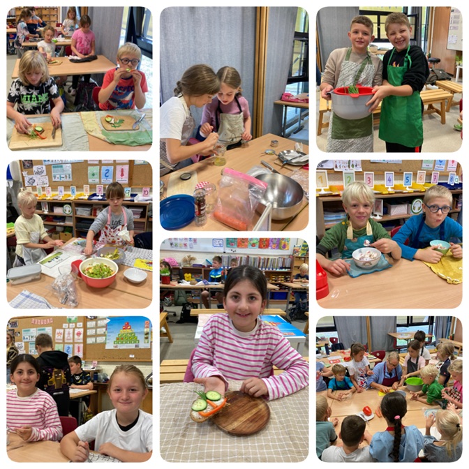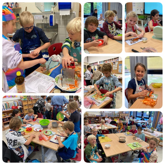 Im Rahmes des Ernährungsführerscheins lernen die 3. Klassen zurzeit einiges über eine gesunde Ernährung und probieren mit viel Freude einige Rezepte aus. Und das Beste: Die selbst zubereiteten Speisen scheinen den kleinen Köchen zu schmecken.