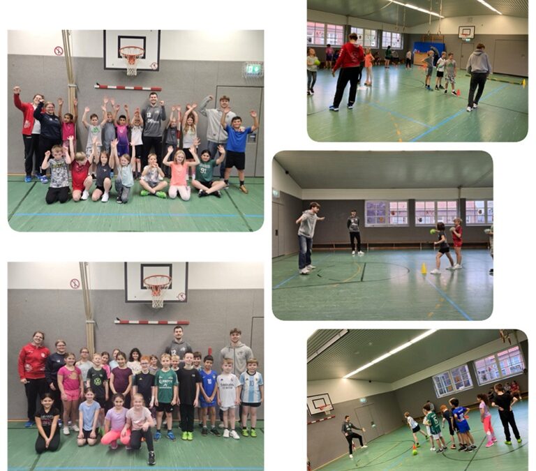 Nach einer spielerischen Aufwärmphase ging es an verschiedene Stationen, die handballerische Übungen beinhalteten. Es musste geprellt, geworfen und wendig gelaufen werden. Belohnt wurden die Kinder mit einem Handballpass, der die Leistungen dokumentierte. Am Ende gab es noch die Möglichkeit, aufs Tor zu werfen. Das war besonders toll, wenn zwei Profis im Tor stehen! Das Gruppenfoto rundete die Doppelstunde ab. Danke, es hat viel Spaß gemacht!